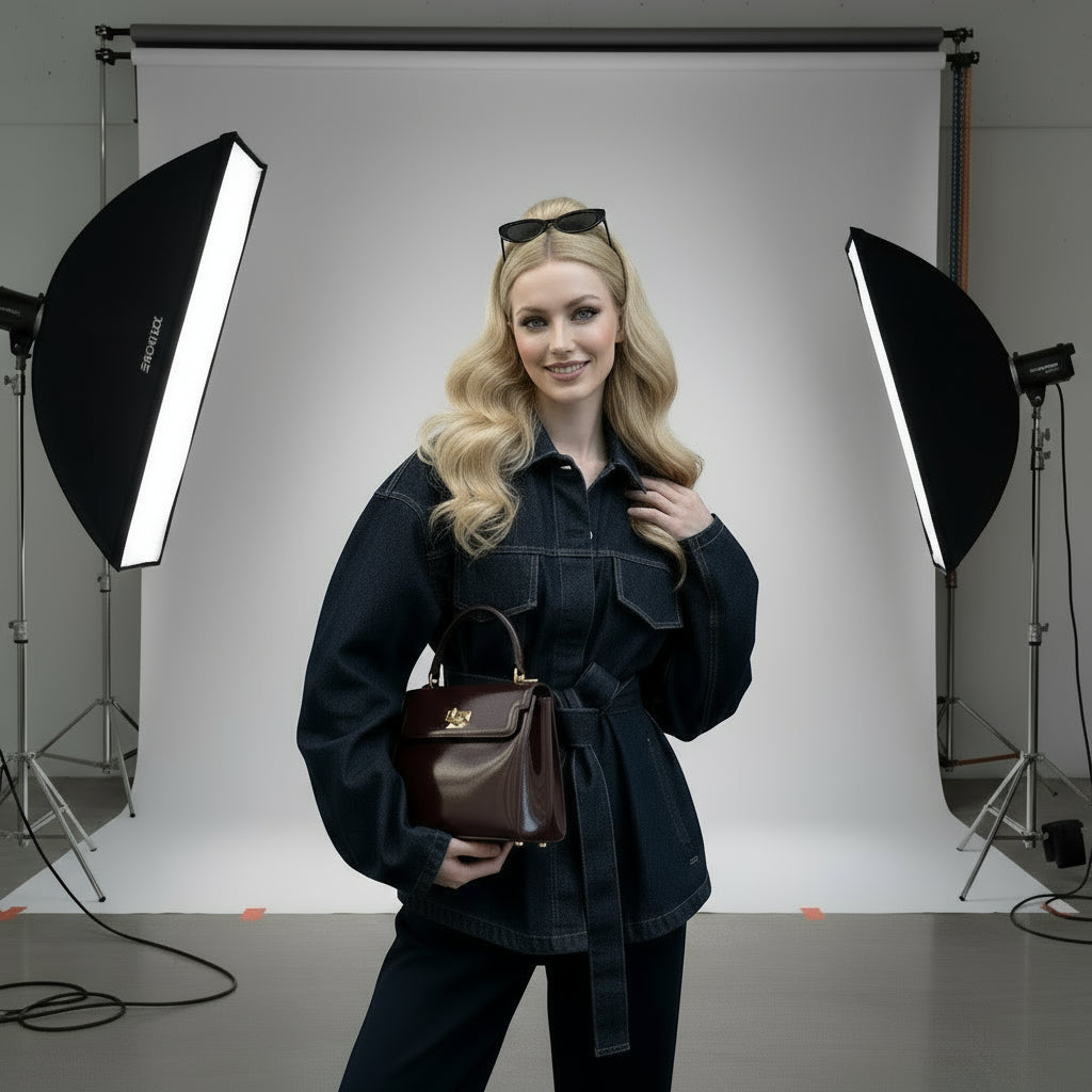 Vintage Belt Denim Set – A Statement Piece This denim set, consisting of a jacket and trousers, combines a classic cut with modern details such as lacing and a clean silhouette. For looks that are both casual and stylish.